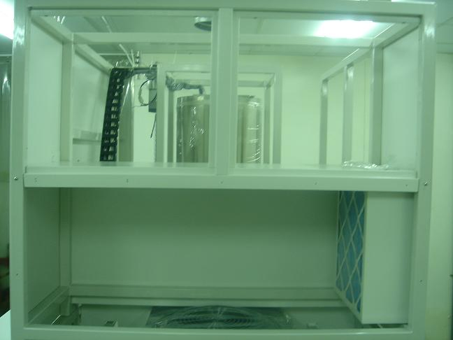 為使得濾紙之life time延長,特別將抽風區域作隔間處理,防止